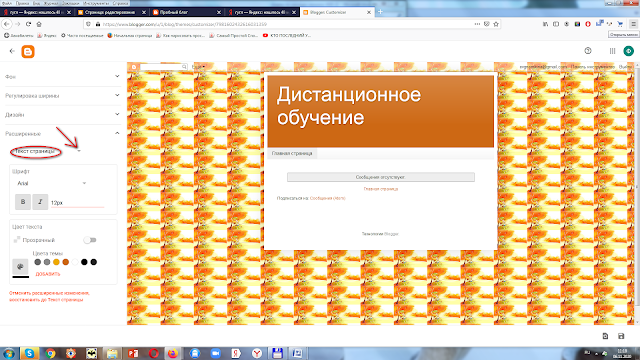12. Выходим из вкладки «Тема», нажав на стрелочку выхода в левом верхнем углу рядом со значком блоггера.